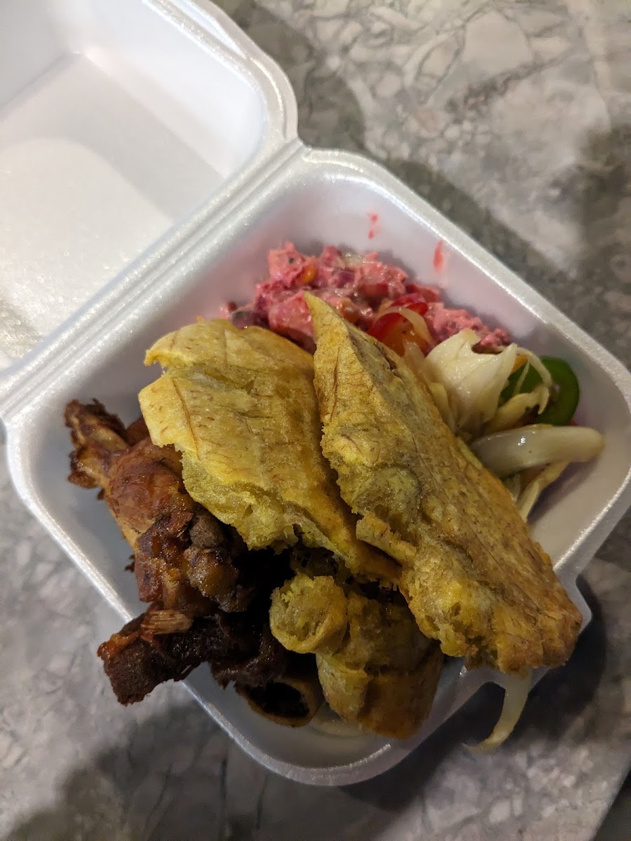 The menu reflects a blend of familiar favorites and Caribbean staples, making it approachable even for first-time visitors. One of the standout dishes is the spaghetti, which surprises many guests with its rich seasoning and hearty portions. It’s comforting, filling, and clearly made with care, earning consistent praise in local reviews. Another highlight that keeps regulars coming back is the tostones. These crispy, golden plantain slices deliver the perfect balance of crunch and flavor, making them an ideal side or snack to share at the table.